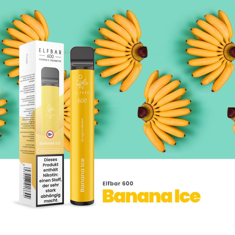 Elfbar 600 Banana Ice bietet einen angenehm milden und ausgewogenen Geschmack von süßen Bananen Eis mit einem Hauch von Frische.